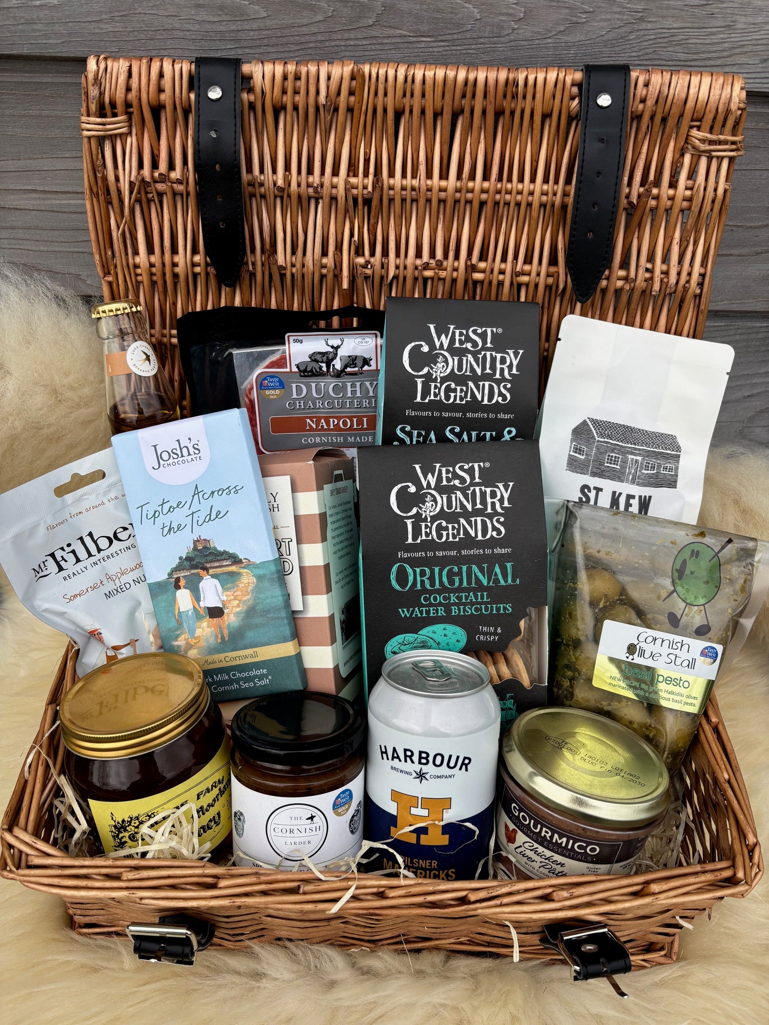 A carefully curated selection of tempting treats, sourced in Cornwall and beyond. This hamper contains: